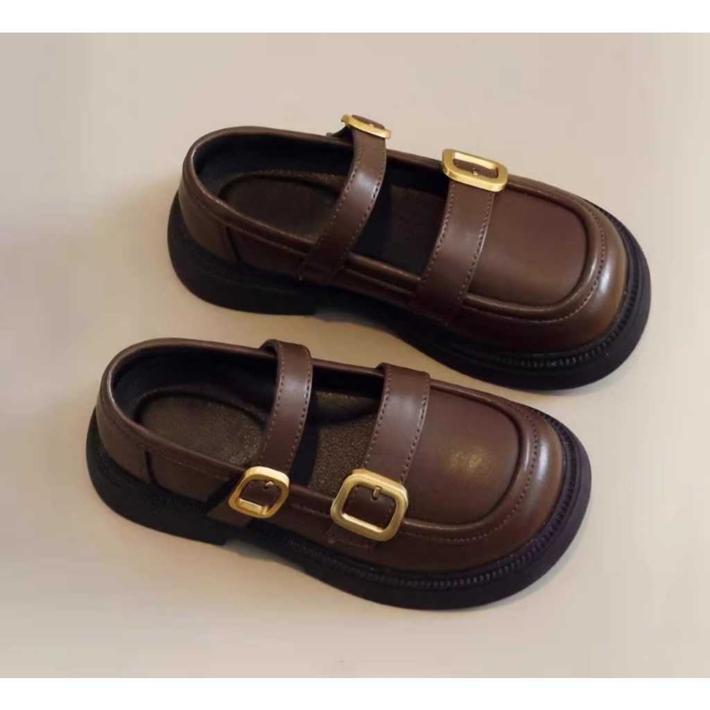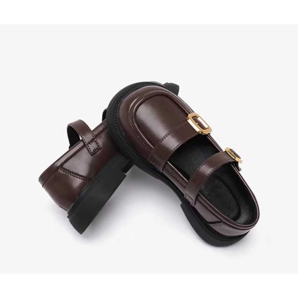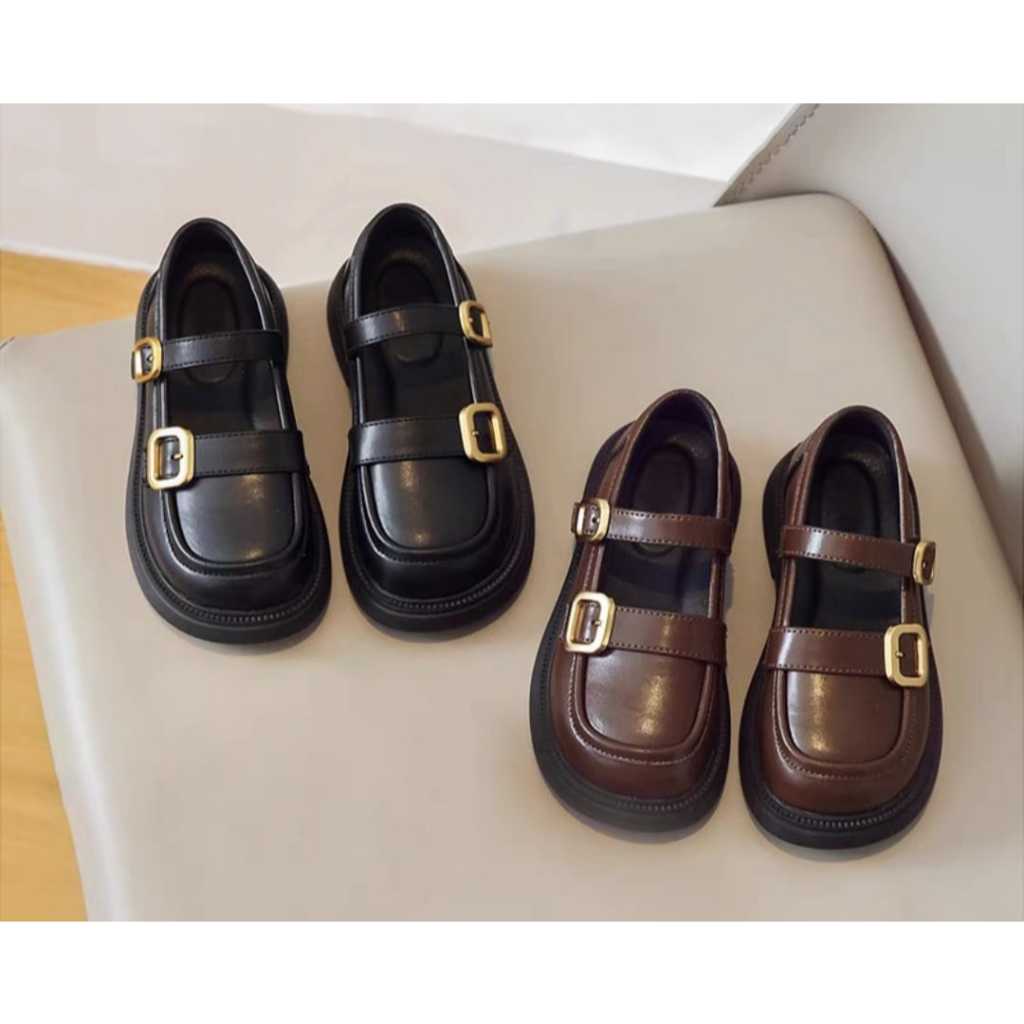 Bunga Sepatu Anak Sekolah Cewek Perempuan Dockmart Double Gesper Hitam Brown (699)