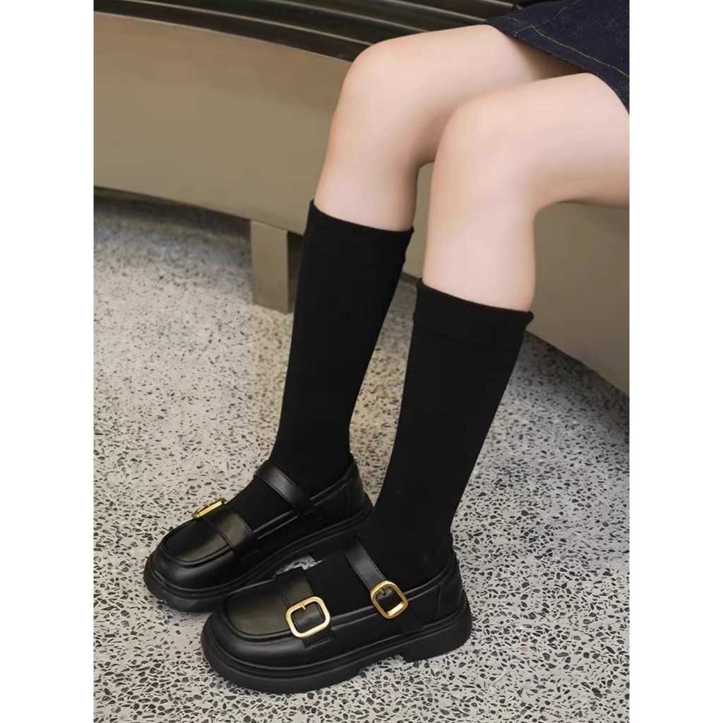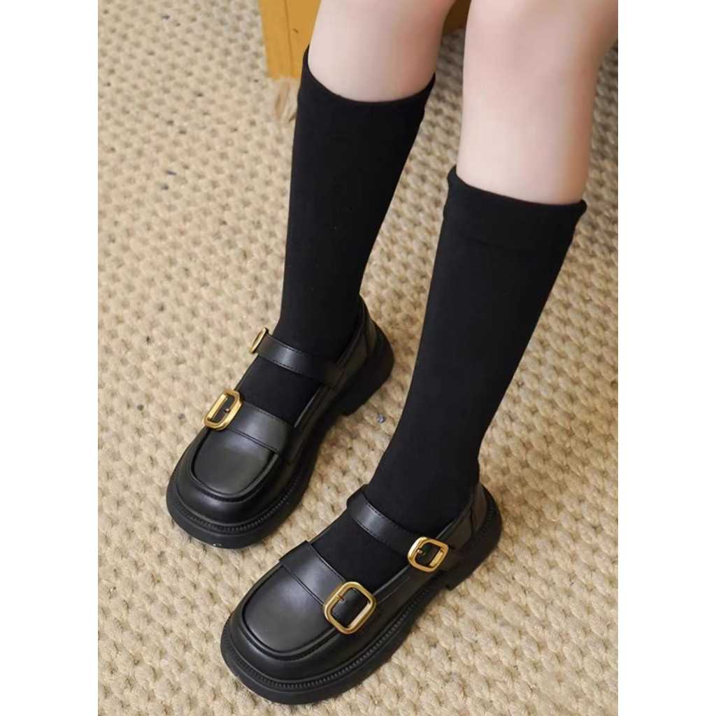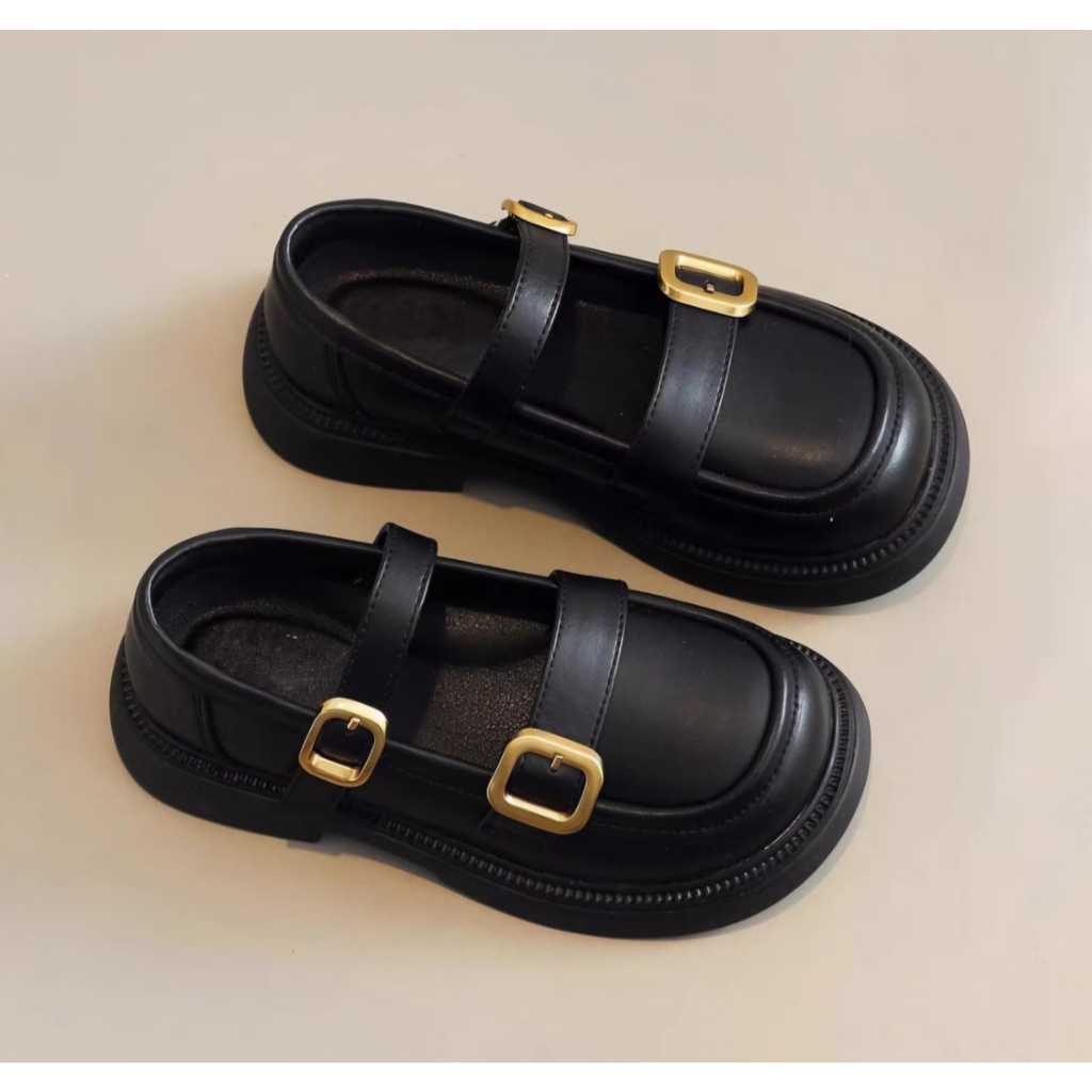 Bunga Sepatu Anak Sekolah Cewek Perempuan Dockmart Double Gesper Hitam Brown (699)