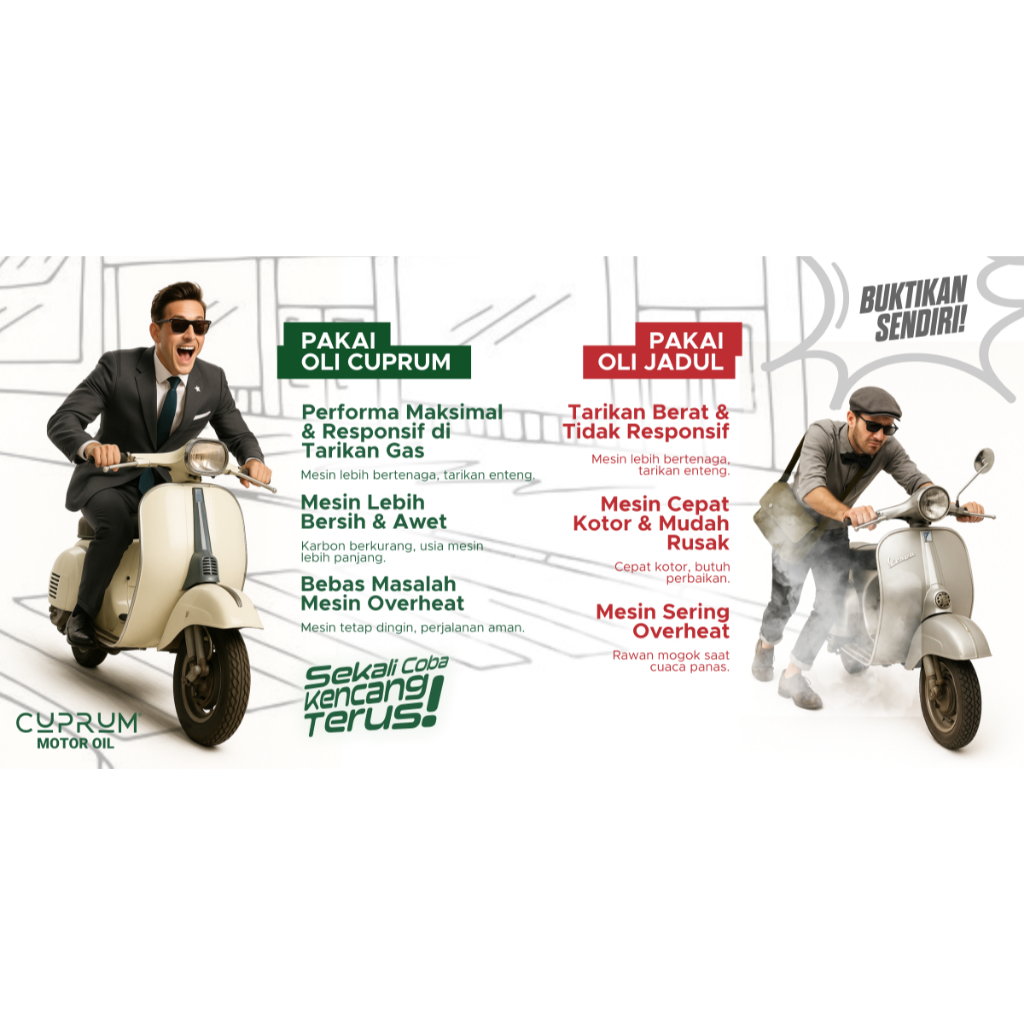 Oli Cuprum Motor Oil 2 Stroke | Mesin Motor 2Tak, Oli Samping, Vespa Klasik, Rx king, Trail Cross