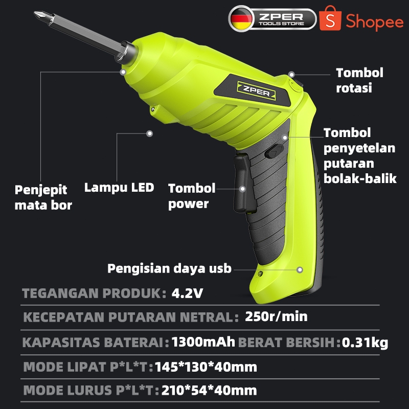 ZPER OBENG ELEKTRIK SET KOMPLIT 4.2V OBENG LISTRIK SCREWDRIVER CORDLESS MESIN BOR BATERAI