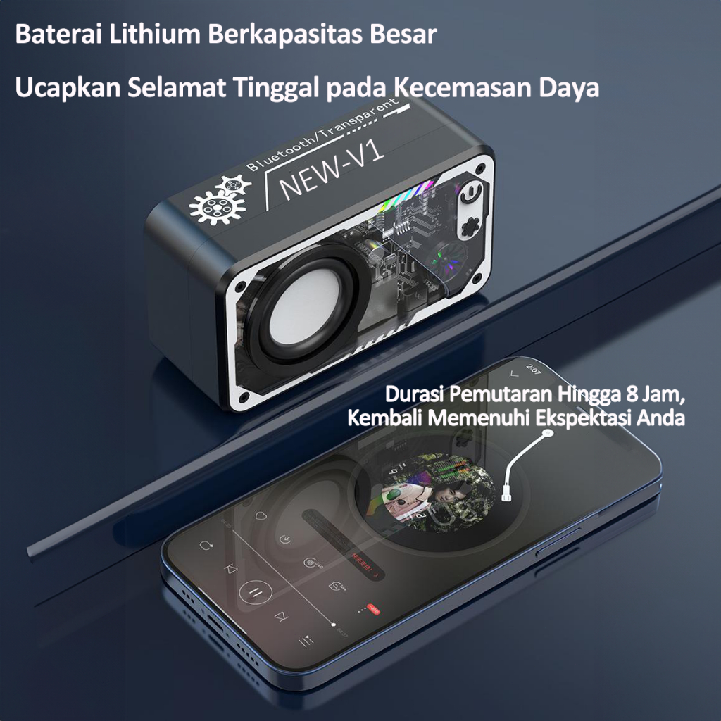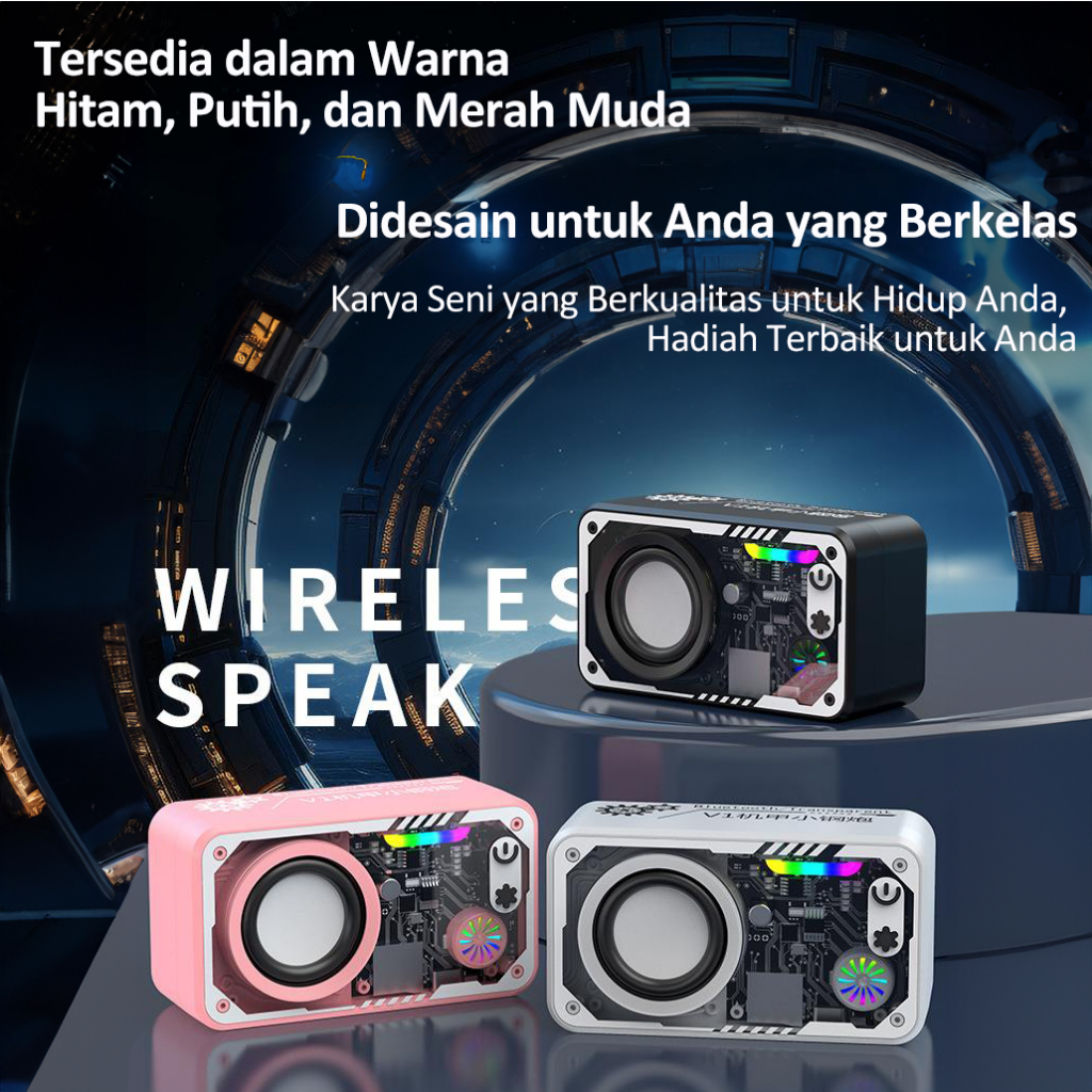 Speaker Bluetooth Super Bass Double Subwoofer Music Speaker RGB LED Light Transparent Mecha Speaker Speaker Bluetooth Ba