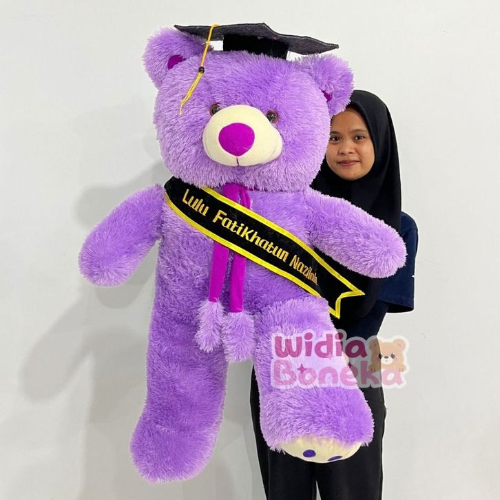 Boneka Wisuda Jumbo Bear Syal Telapak + Slempang Bordir