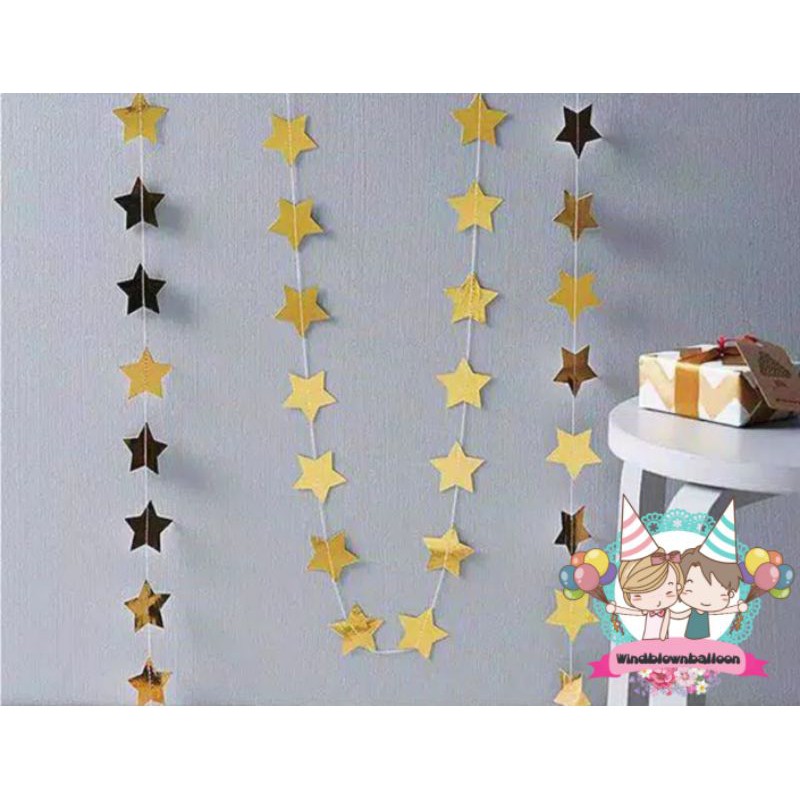 WINDBLOWN BALON FLAG BANNER GARLAND STAR / BINTANG utk DEKORASI RUANGAN / ULANG TAHUN HBD BIRTHDAY