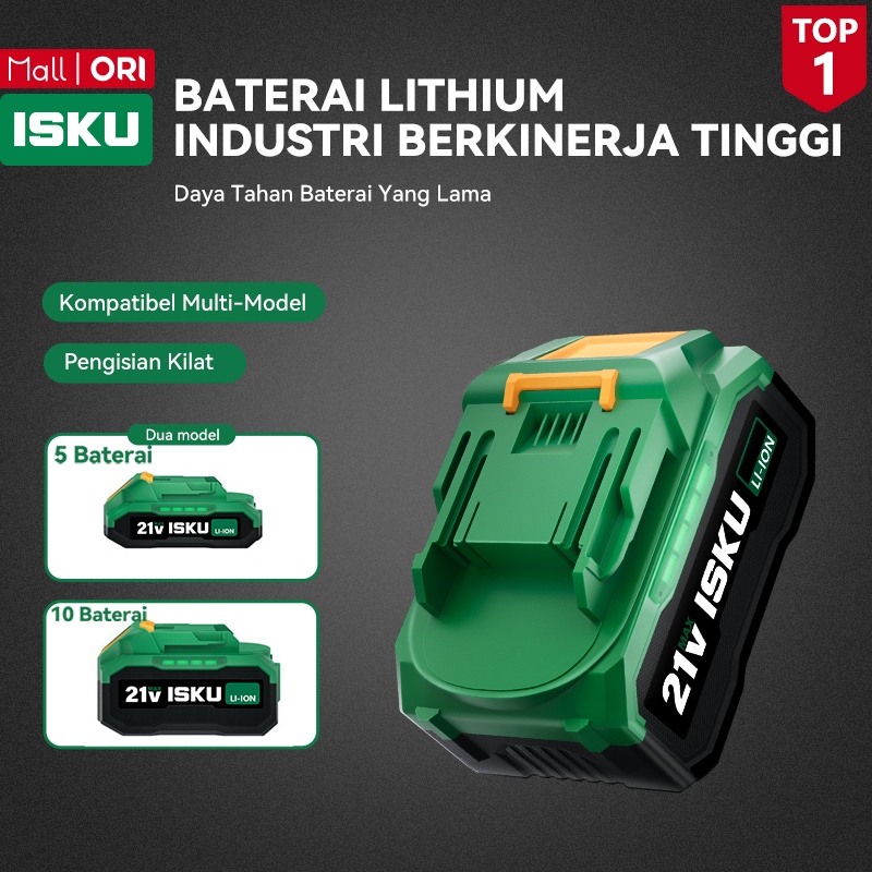 ISKU Baterai lithium 21V Kapasitas besar Pengisian cepat baterai lithium Baterai kontrol suhu cerdas cocok untuk berbaga