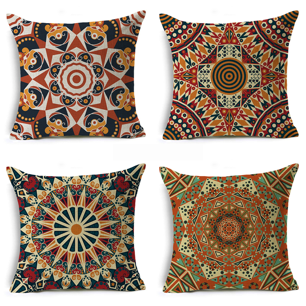 1 Set 4 sarung bantal gaya etnik | cocok untuk sofa rumah | mobil | Sarung Bantal Linen Dekorasi Rumah | 40x40 | 45x45 |