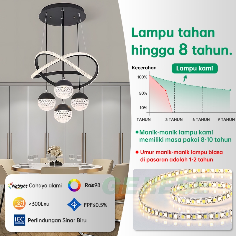 Lampu Gantung GEJIESE Minimalis Kristal Lampu Gantung Ruang Tamu Kamar Tidur 3Warna Mewah Lampu Hias