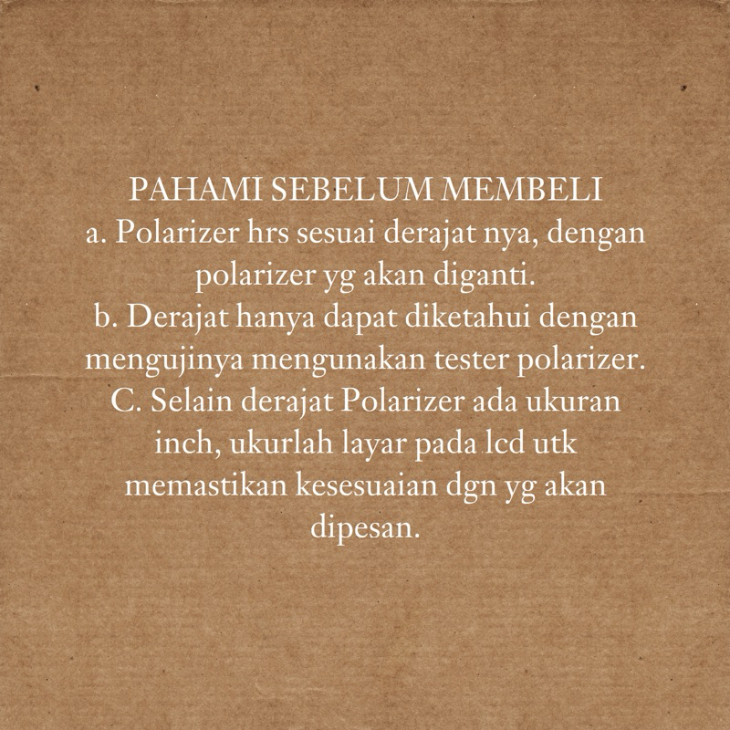1Pcs Polaris Polarizer 32 inch 90 derajat Dimensi 710X405mm