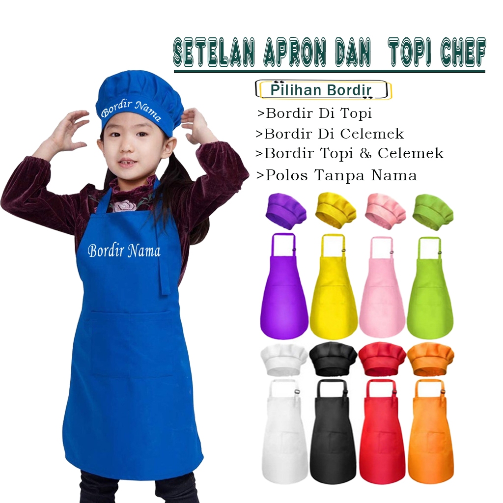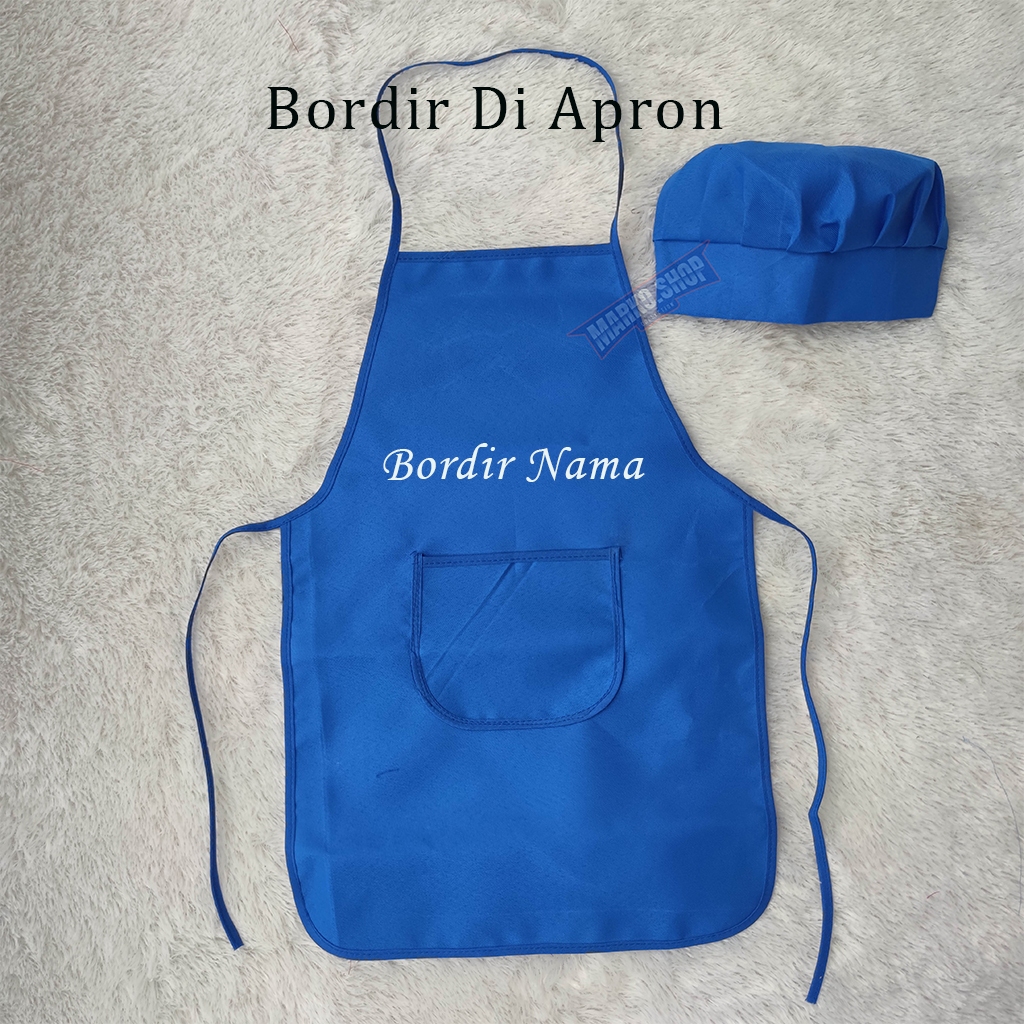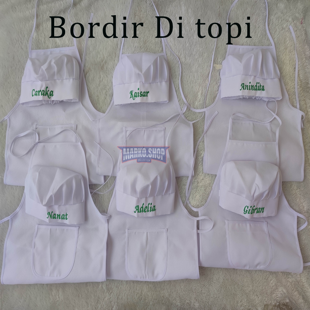 Setelan Topi Koki Chef Hats Apron Celemek Bordir Nama Bebas Posisi Bordir Nama