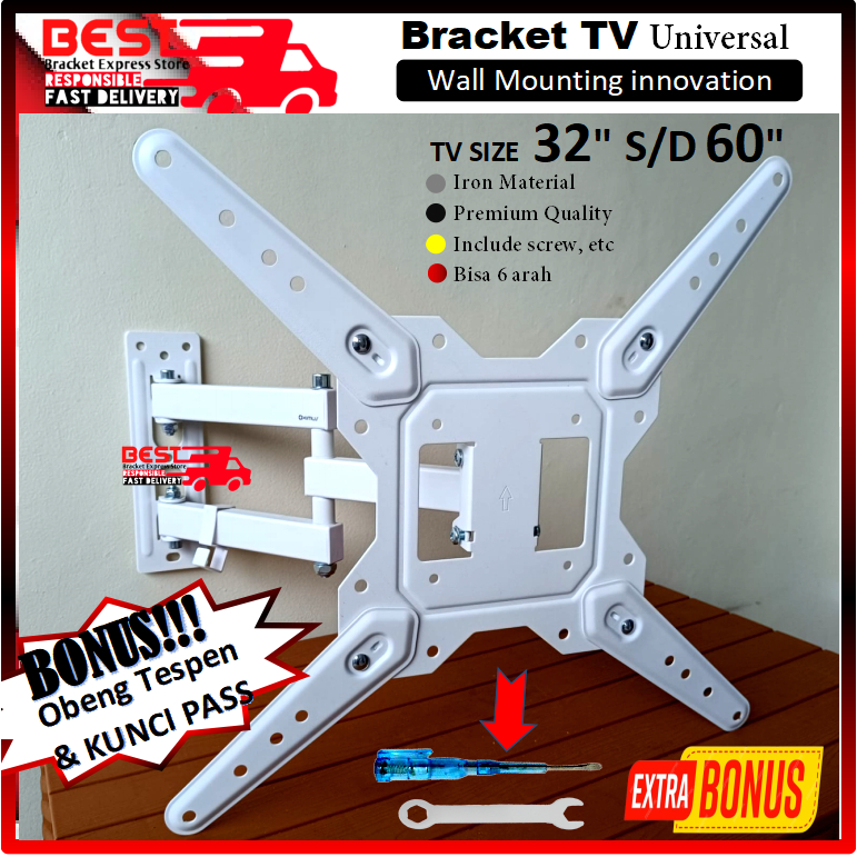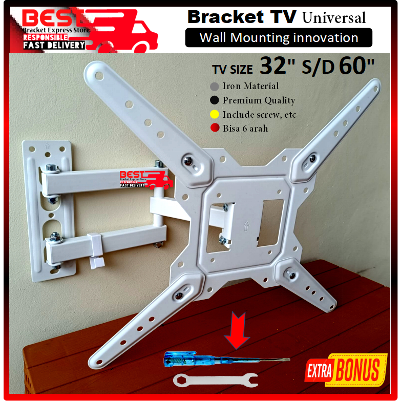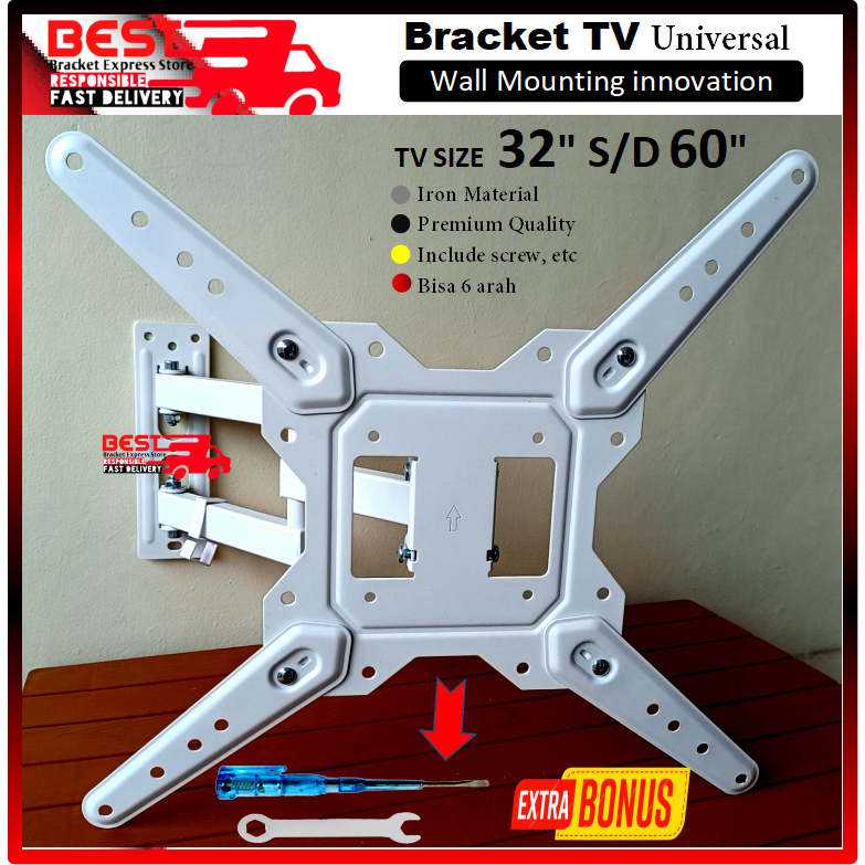 Bracket tv 17 s/d 60 inch 60 55 50 43 42 40 32 24 21 17 INCH IMPORT SUPER PREMIUM 6 arah kuat tebal dan kokoh Bracket tv Braket tv Breket tv Briket tv Brackettv Brakettv Brekettv Brikettv