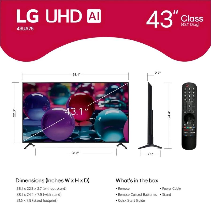 TV LG 43UA7550 43 Inch UHD AI 4K Smart TV + Magic Remote 43UA7550PSA - lg android smart tv