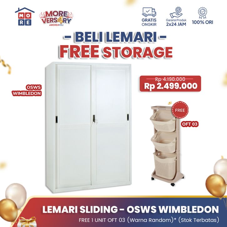 MORE OSWS WIMBLEDON / Olympic Lemari Sliding Pakaian Besi / Steel Wardrobe / Lemari Penyimpanan/Putih m0dern Minimalis