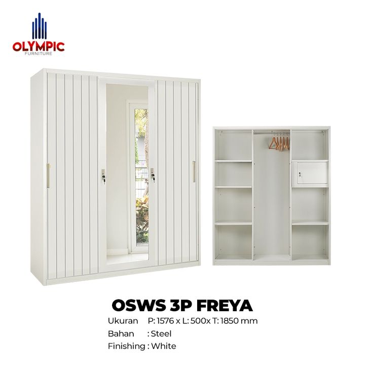 MORE Olymsteel OSWS 3P FREYA / Lemari Pakaian Besi Sliding 3 Pintu