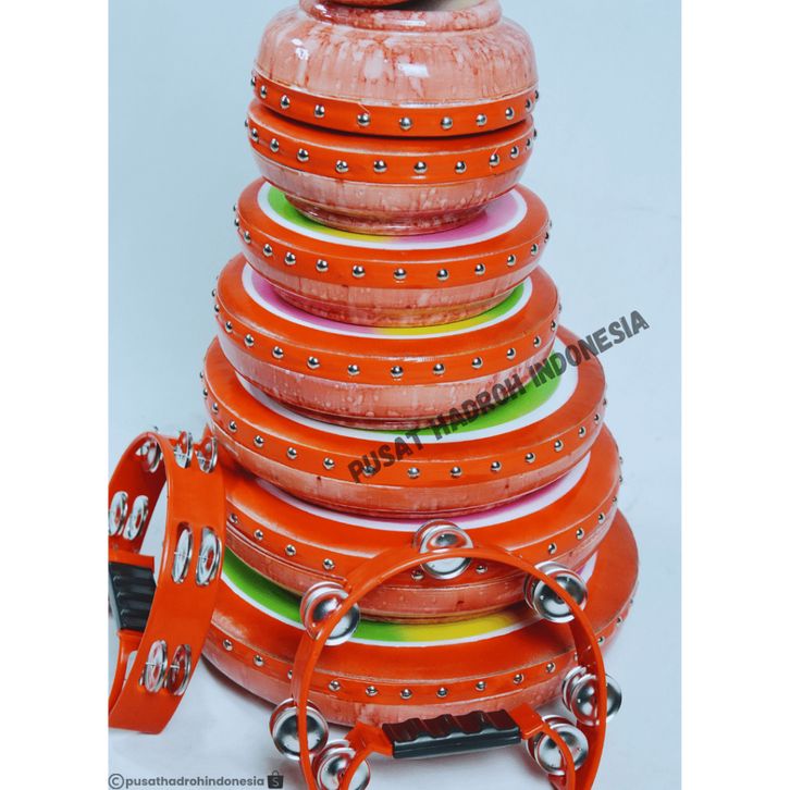 Rebana Qasidah Motif Keramik Merah 1 Set Isi 10 Rebana Hadroh Banjari Terbangan Lasqi Fullset Susun 8 FREE TAS