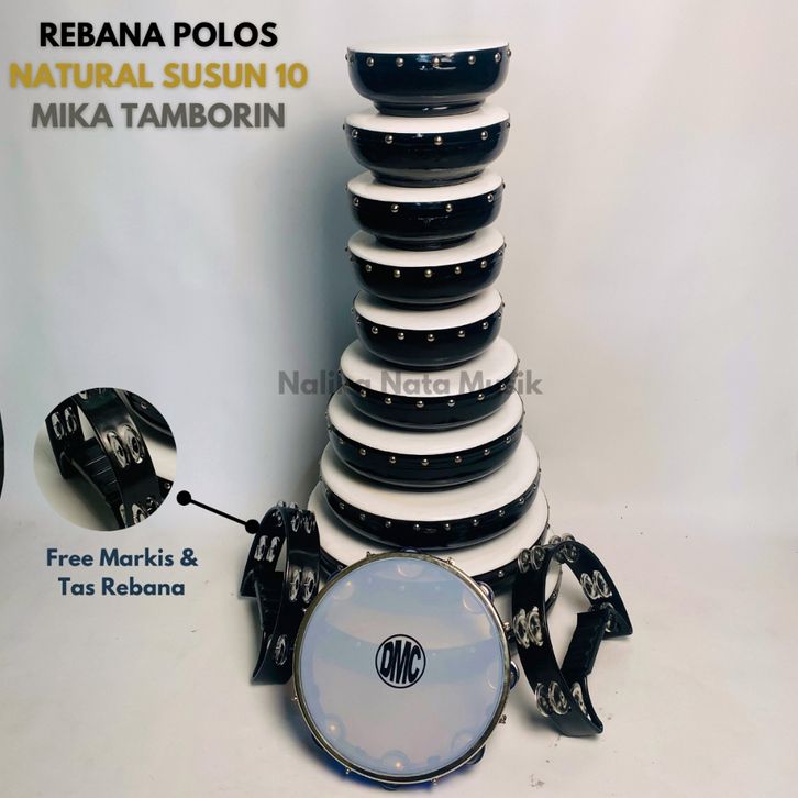 REBANA POLOS NATURAL SUSUN 10 + MARKIS FIBER SINGLE & TAMBORIN MIKA FREE TAS