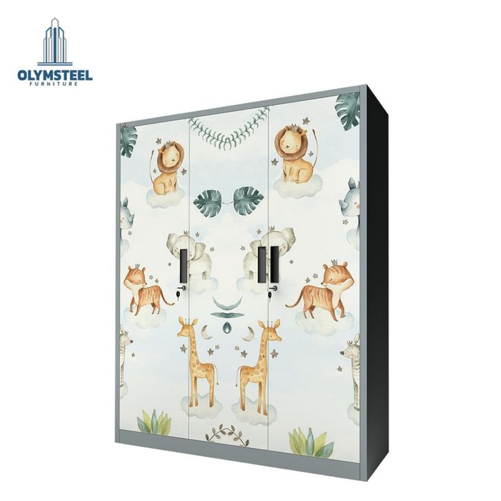 MORE Olymsteel OSW 3P KIDS ZOO 01 / Lemari Pakaian Anak / Lemari Pakaian Besi / Lemari Pakaian 3 Pintu Besi