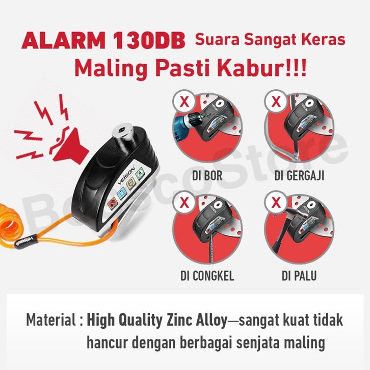 Kunci Gembok Motor TERBAIK VEISON DX19 Gembok Cakram Alarm Original Kunci Rem Sepeda Motor Discbrake Lock gembok cakram