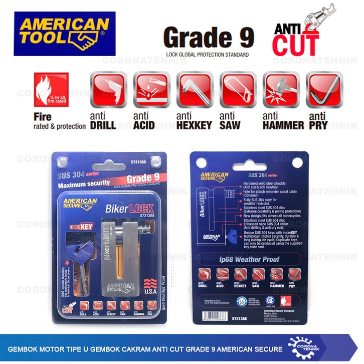 Kunci Gembok Motor9rade 9 American Secure Gembok Motor Tipe U Gembok Cakram Anti Cut