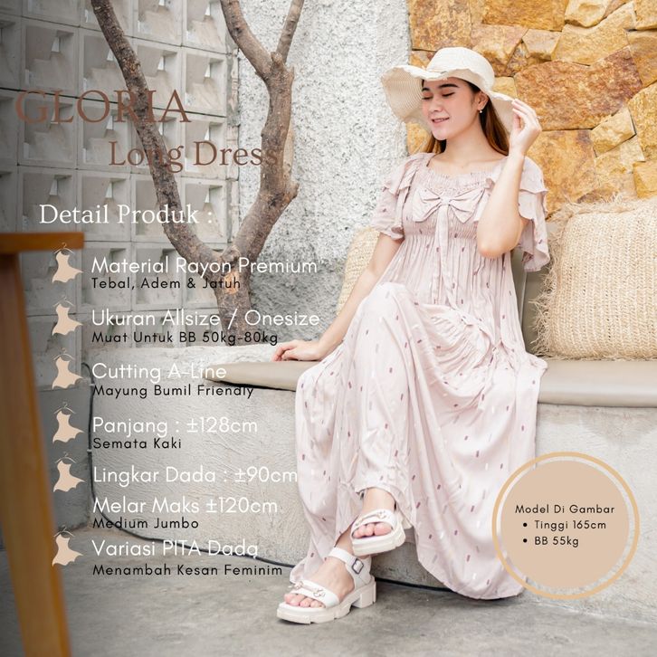 GLORIA Daster Sabrina Pita Rayon Premium By Ademin Co / Long Dress Ruffle