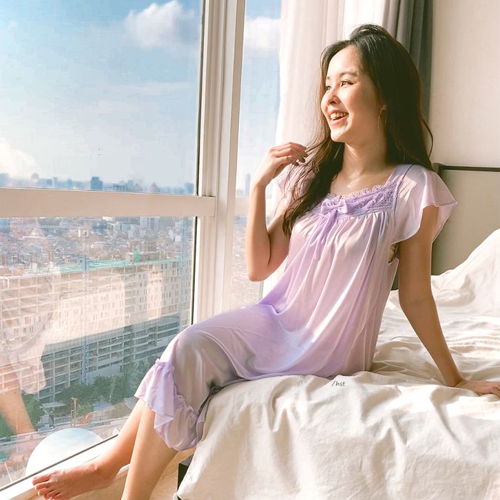 Daster Tidur Hst Renda Elegan `Purple Orchid
