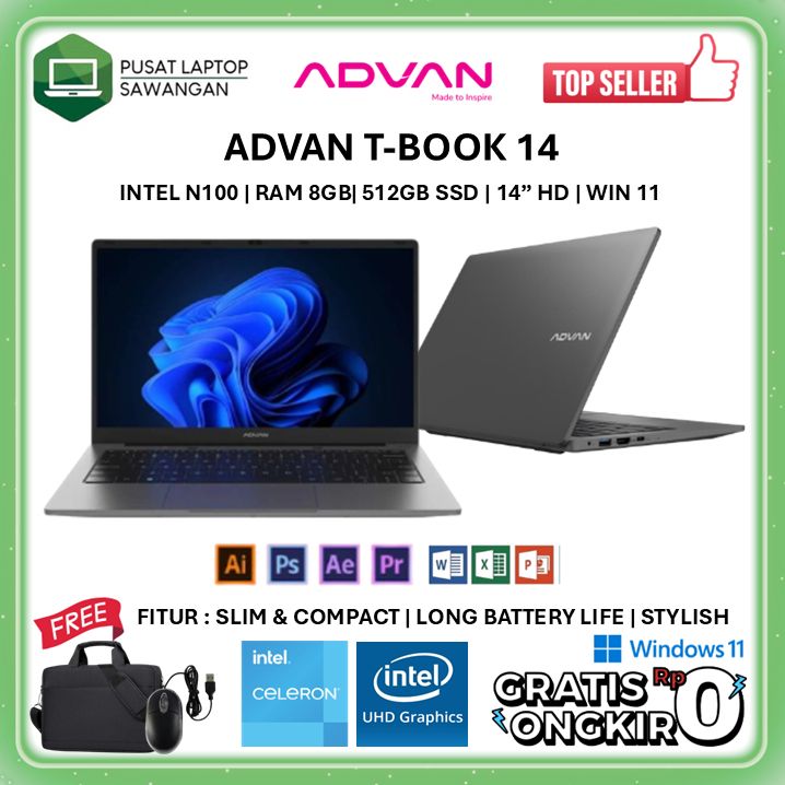 Advan Tbook N100 Quad Core RAM 8GB SSD 512GB Layar 14" Windows 11 Garansi Resmi 1 Tahun