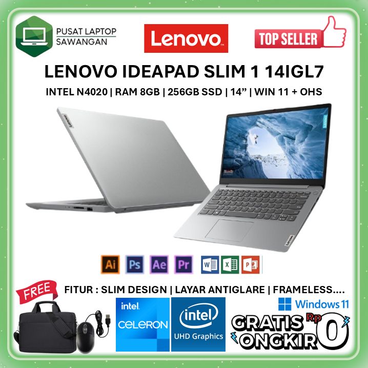 Laptop LENOVO Ideapad Slim 1 Intel N4020 RAM 8GB 512GB SSD 14 Inch HD Win11 Home Termurah