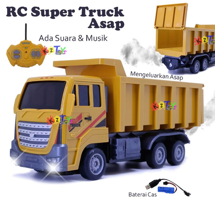 mainan remote control MAINAN RC DUMP TRUCK MOBIL BAK PASIR TAMBANG ADA MUSIK LAMPU & SUARA KELUAR ASAP REMOT CONTROL