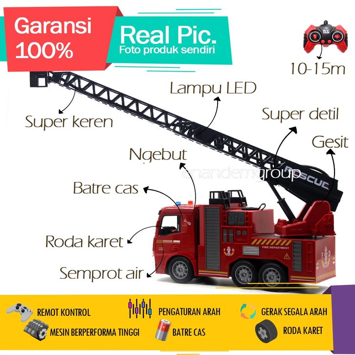 mainan remote control Mainan Mobil Remot Kontrol RC Truk Pemadam Kebakaran Semprot Premium Sirine LED