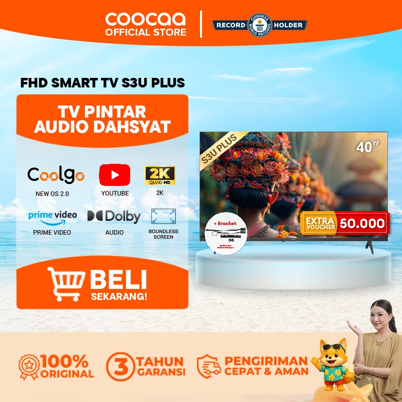 [+BRACKET] NEW COOCAA 40 inch S3U PLUS - Coolita 3.0 - Smart TV - Youtube/ Prime Video - Dolby Audio (COOCAA 40S3U Plus)