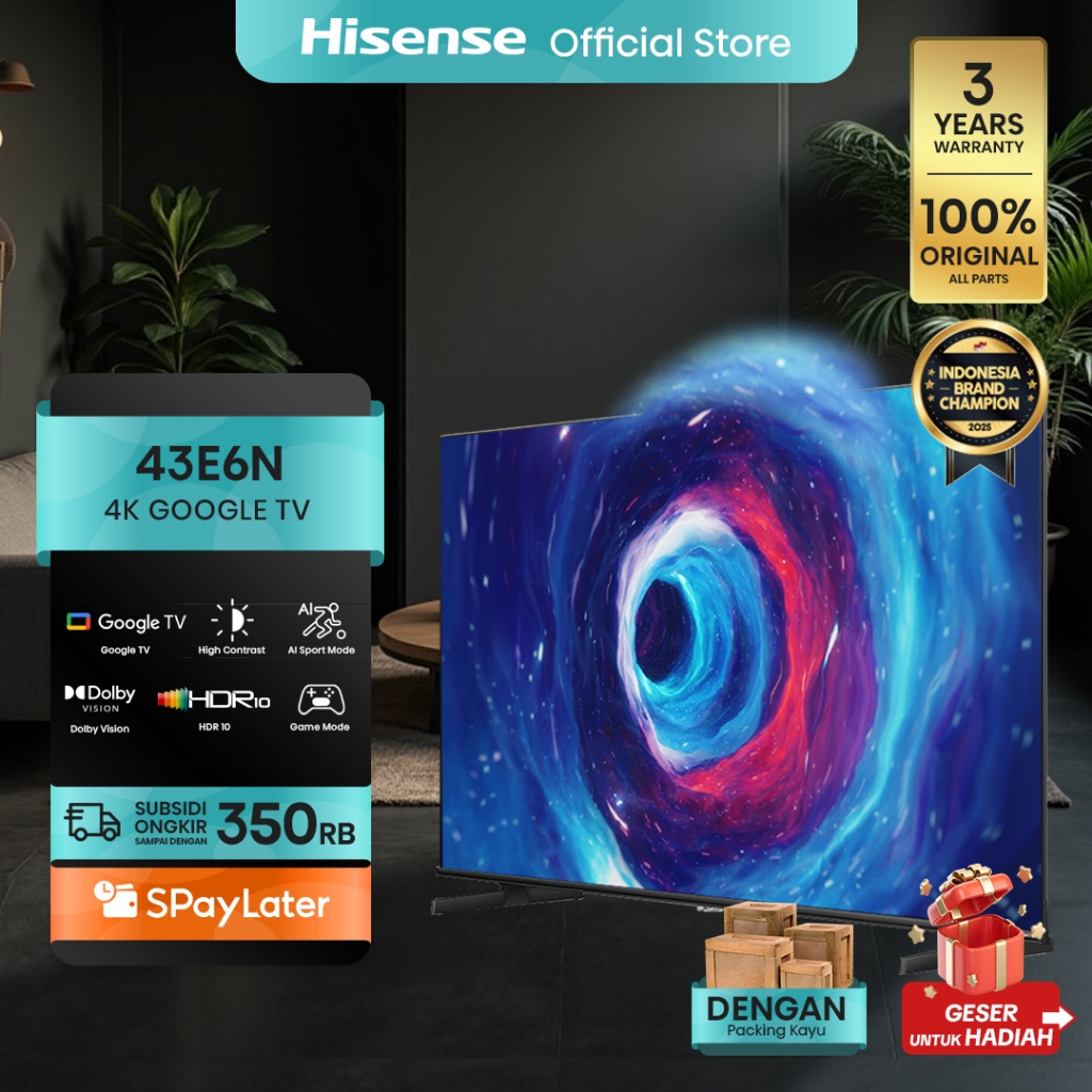 (Packing Kayu) Hisense TV 43" 43E6N 4K Google Smart TV Karaoke Function-Bezelless Design-Dolby Audio