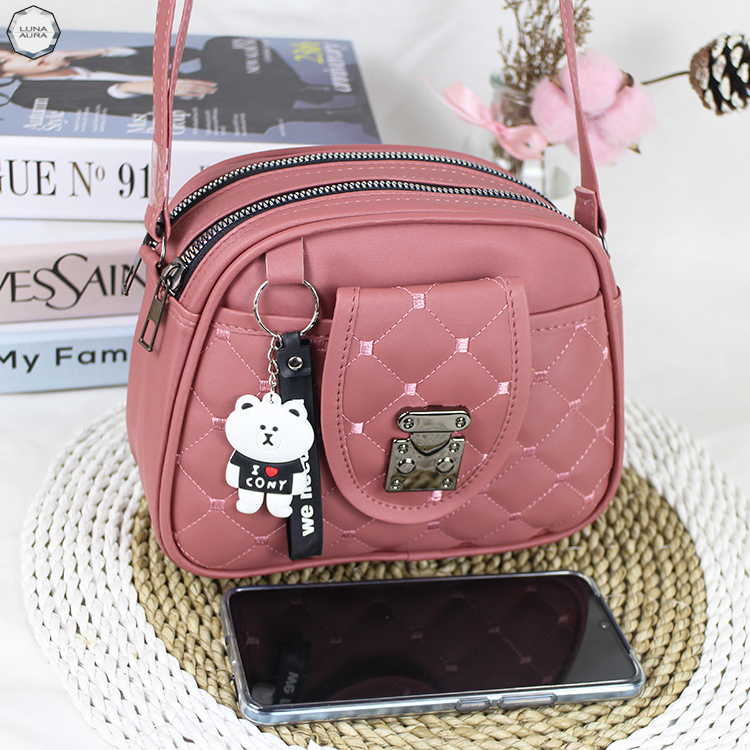 LUNA AURA TAS SELEMPANG WANITA LEONA 3 RUANG FREE GANTUNGAN TAS SLINGBAG WANITA TERBARU TAS WANITA KEKINIAN TAS OOTD