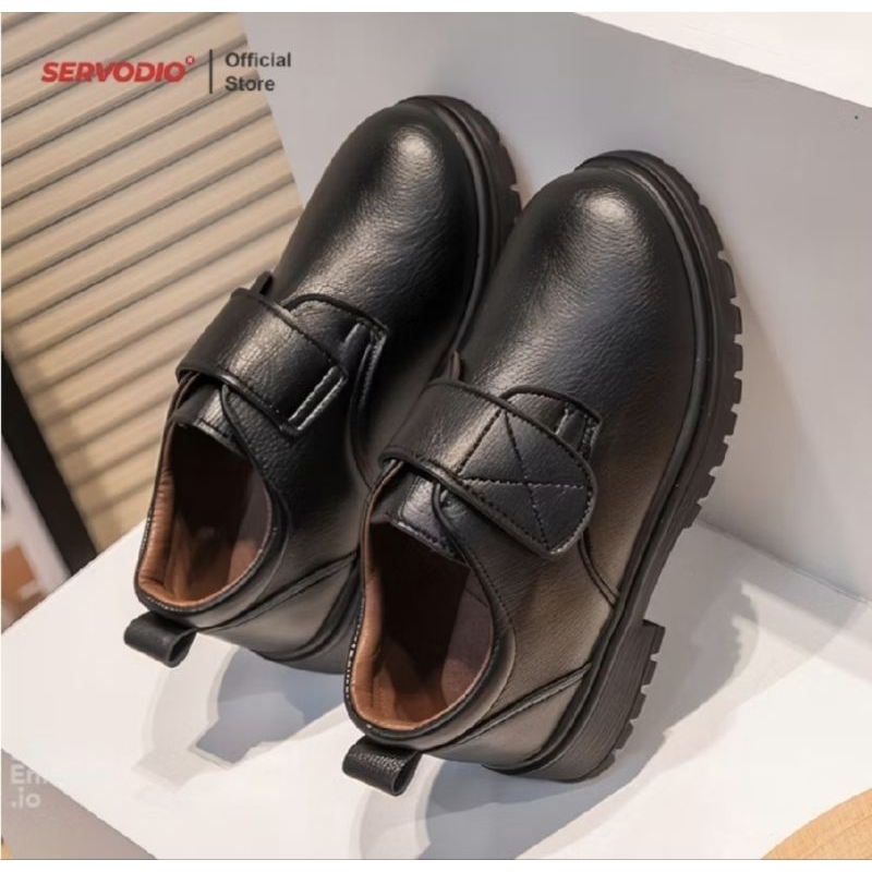 Prabu hitam 28-40, sepatu docmart loafers sekolah anak, sepatu panytofel anak