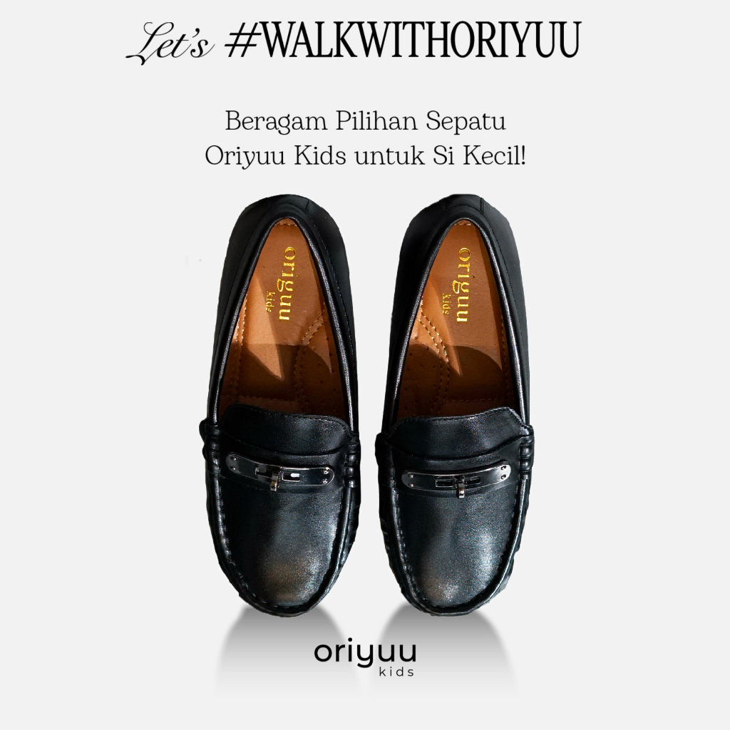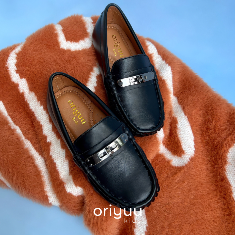 Mini Gentleman - Rafael - Oriyuu Kids - Sepatu Pantofel Anak Laki Formal Pesta Slip On Kulit Hitam