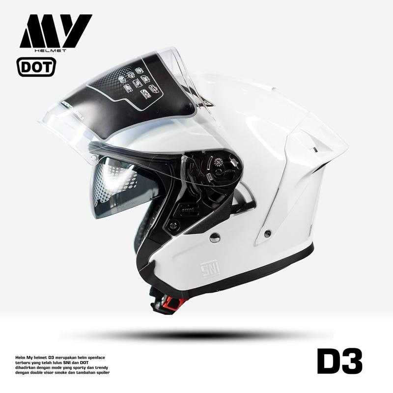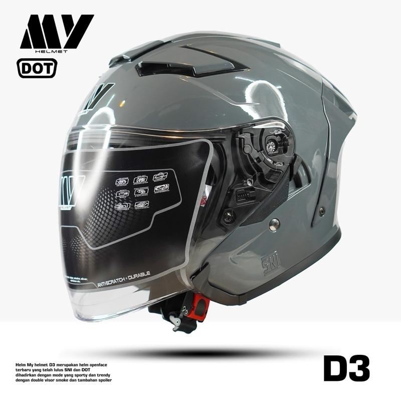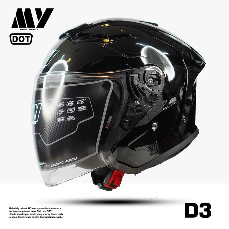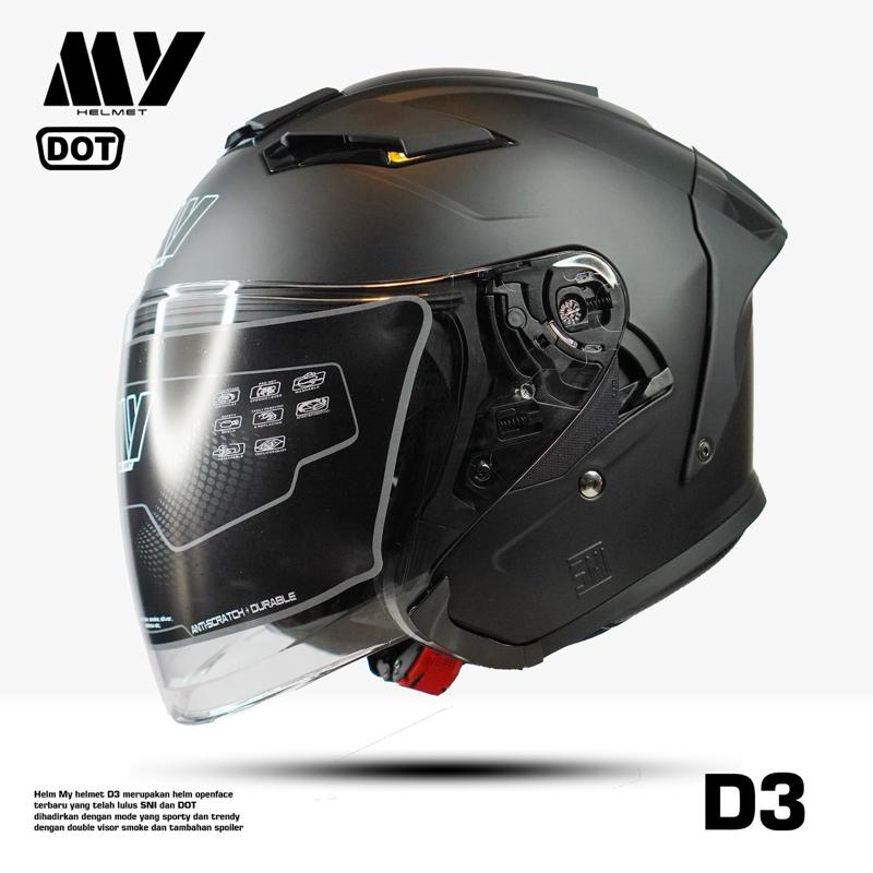 Hy Helmet Helm Half Face D3 Double Visor SNI DOT Original - helm half face