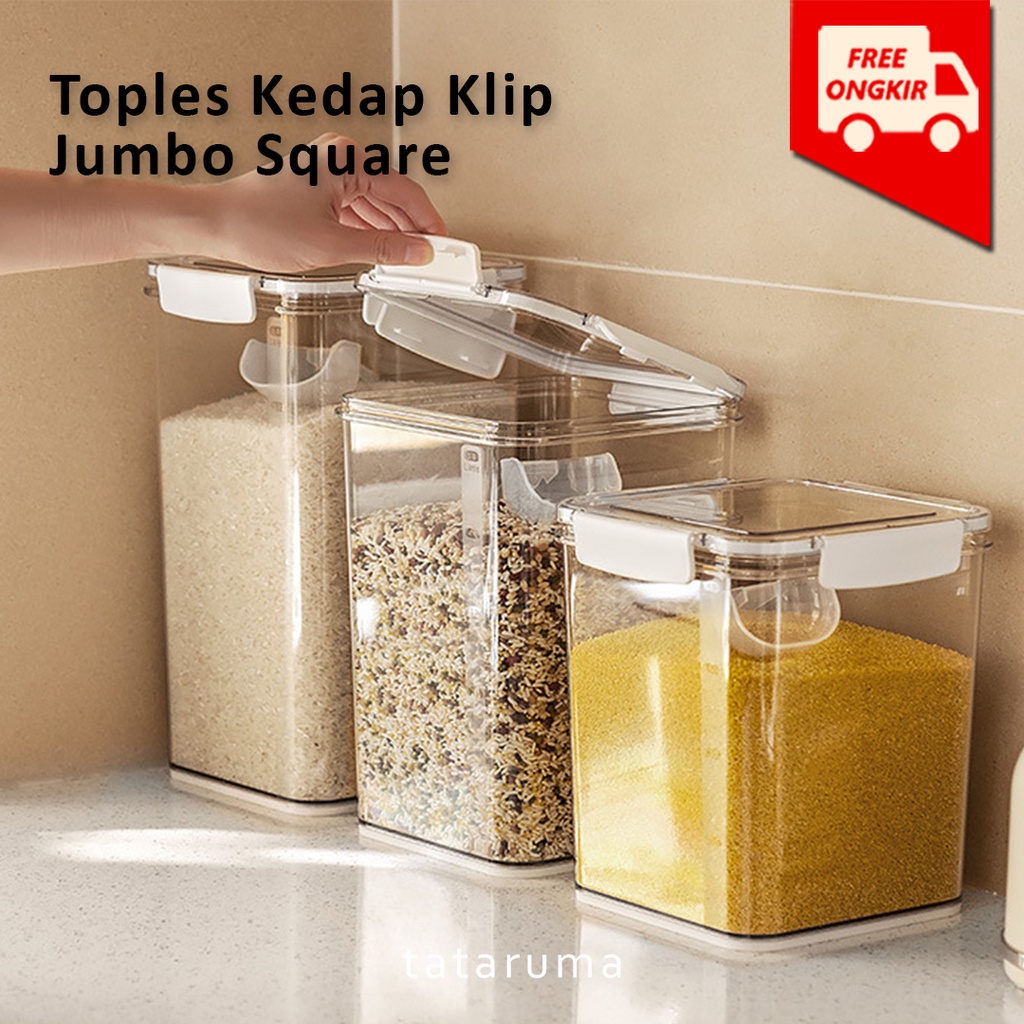 Toples Kedap Jumbo Transparan Anti Bocor Minimalis Tempat Penyimpanan Bahan Makanan