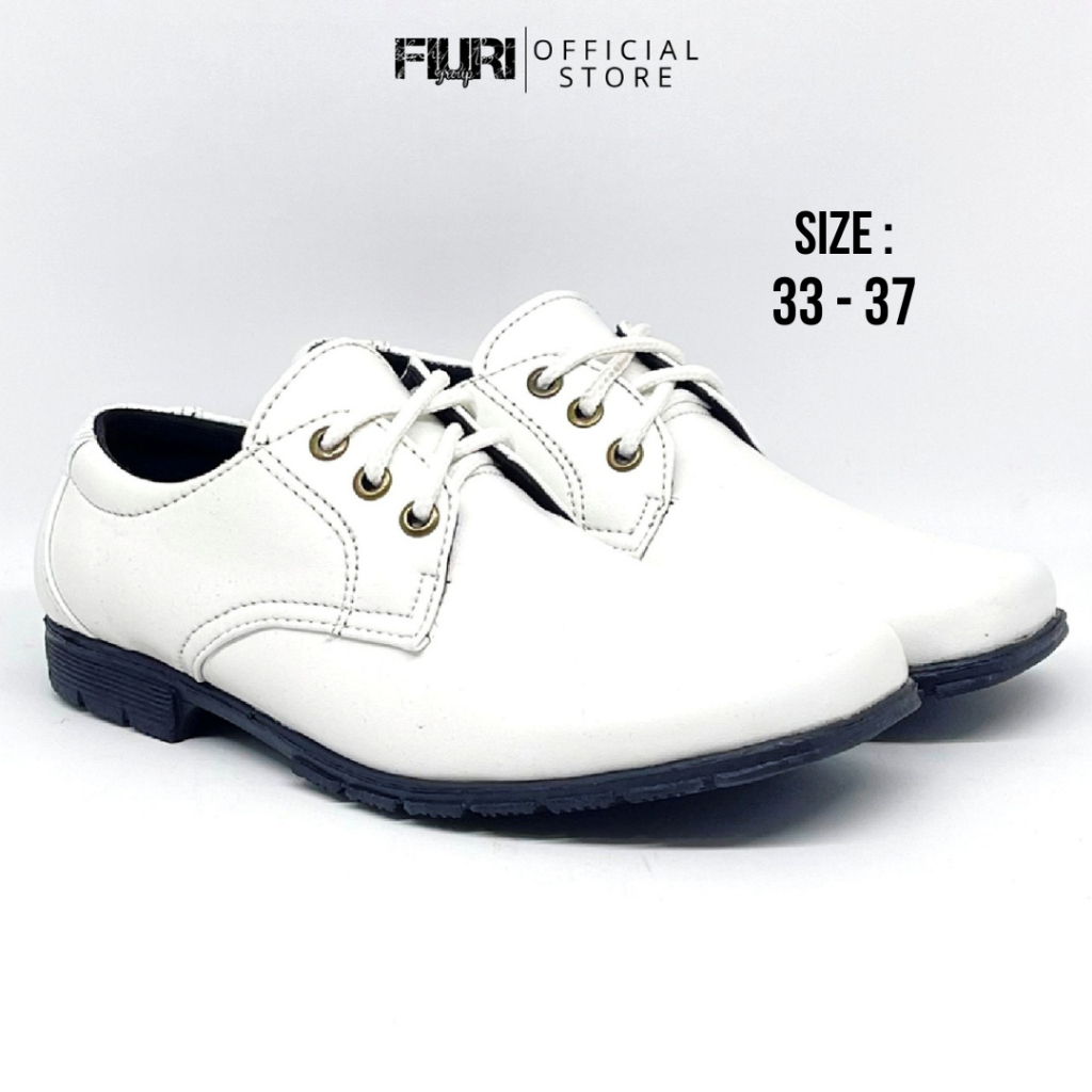 FIURI Official - Rama 33-37 - Sepatu Pantofel Bertali Sekolah Pesta Formal Anak Laki-Laki SD - Putih