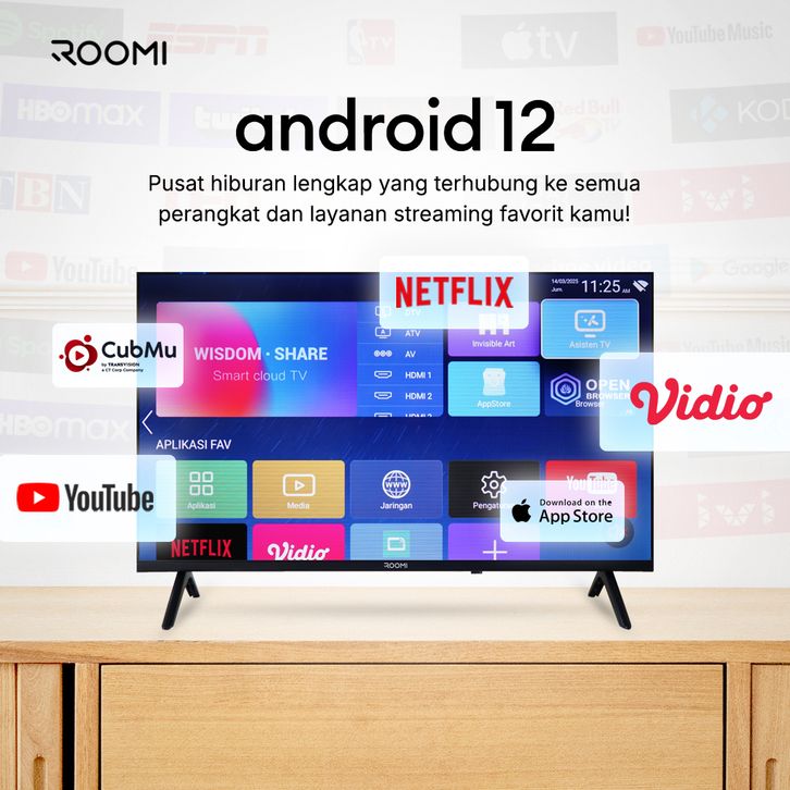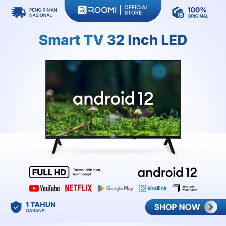 ROOMI Smart TV 32 Inch Digital Frameless Android 12 RMTV032-F