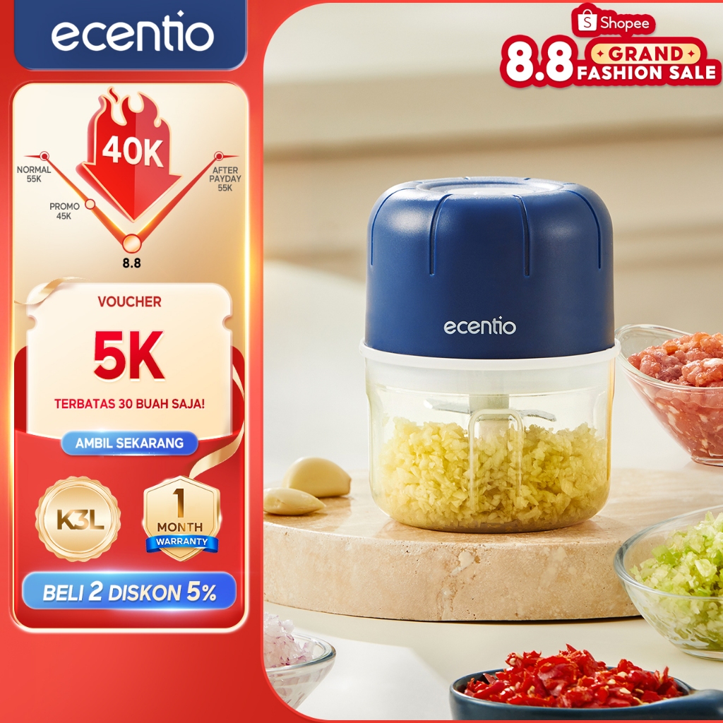 ecentio Mini Chopper Portable Food Grade Penghalus Bawang Multifungsi 250ML 6 Pisau Food Processor Elektrik untuk Bisa Daging & Bumbu