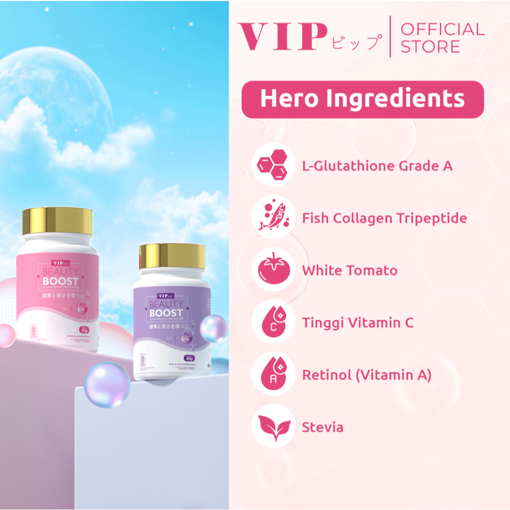 VIP Beauty Boost L-Glutathione + Collagen | 10x Brightening + Whitening Your Skin - vitamin kulit