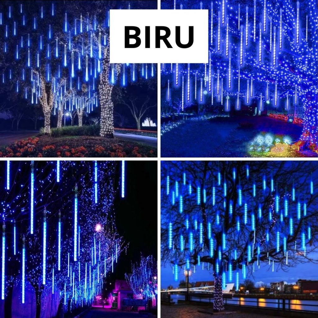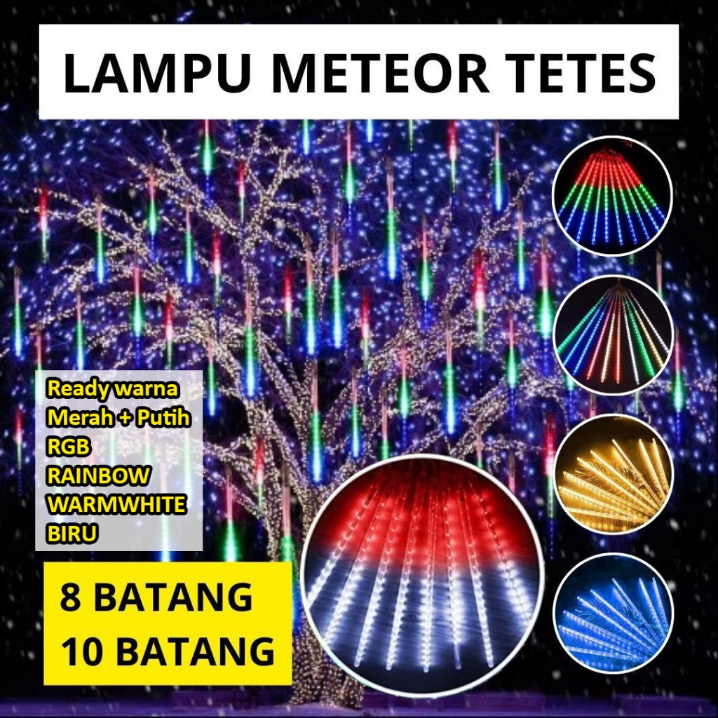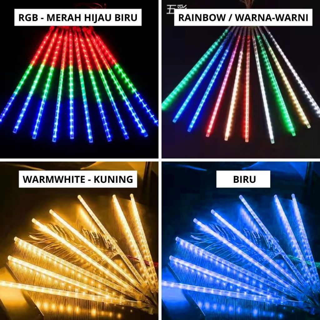 Lampu Meteor LED Hujan 50cm RGB MERAH PUTIH RAINBOW WARNA WARNI BIRU WARMWHITE KUNING 1 set 8 Batang 10 Batang
