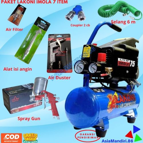 SUPER CICIL-paket kompresor listrik Lakoni imola 75 Oil Silent 3/4 0.75 HP 9 Liter OL07-09