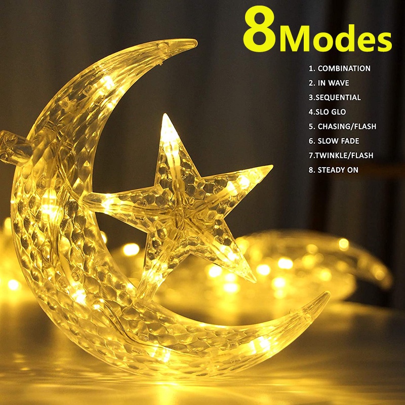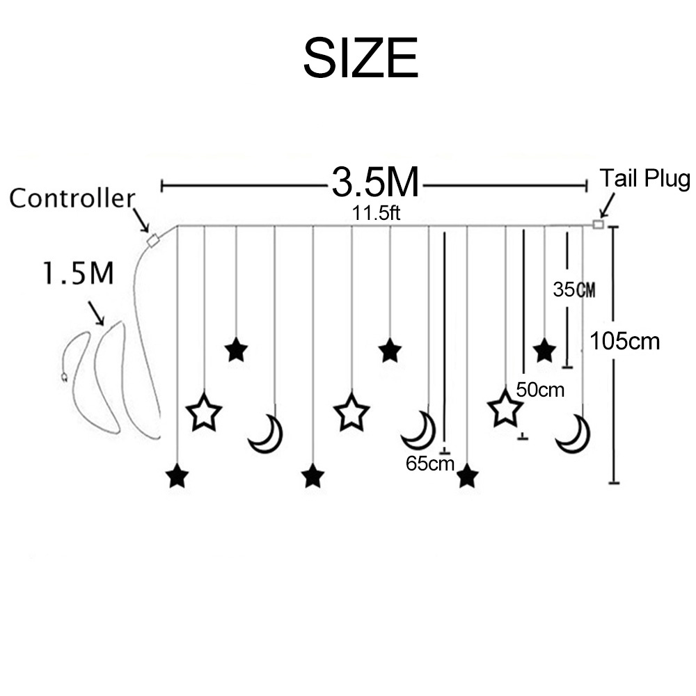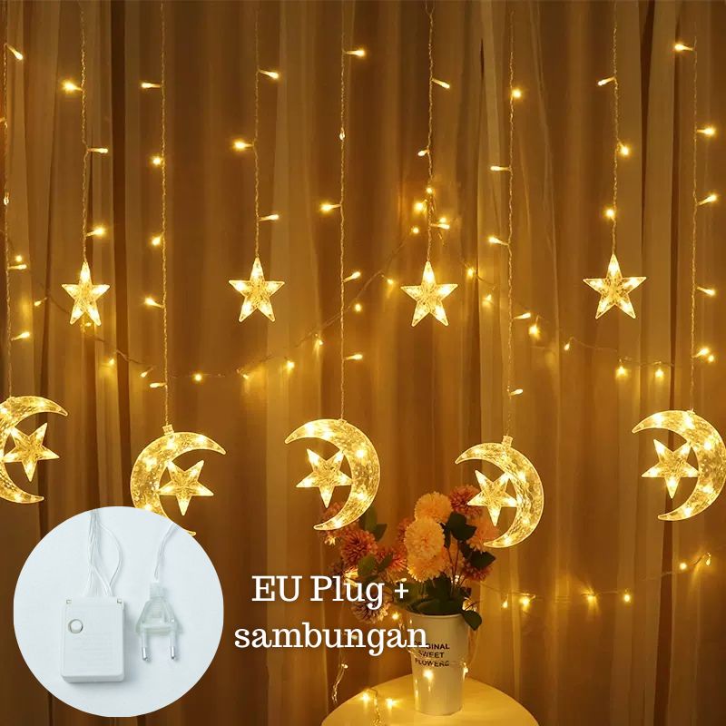 Lampu Tirai Bulan Bintang LED Curtain Light 4M Lampu LED Lebaran Idul Fitri Dekorasi Kamar Lampu Hias Outdoor