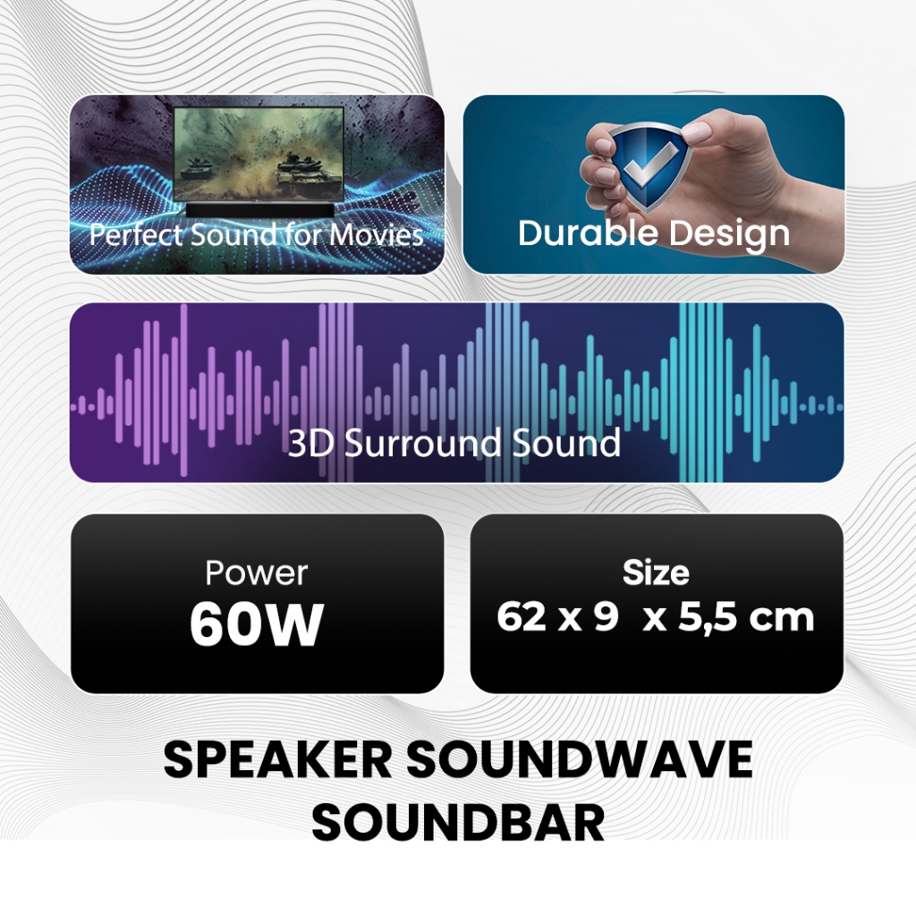 ROOMI Soundwave Speaker TV Soundbar 3D Surround Sound Wireless Connectivity BT MMS0187