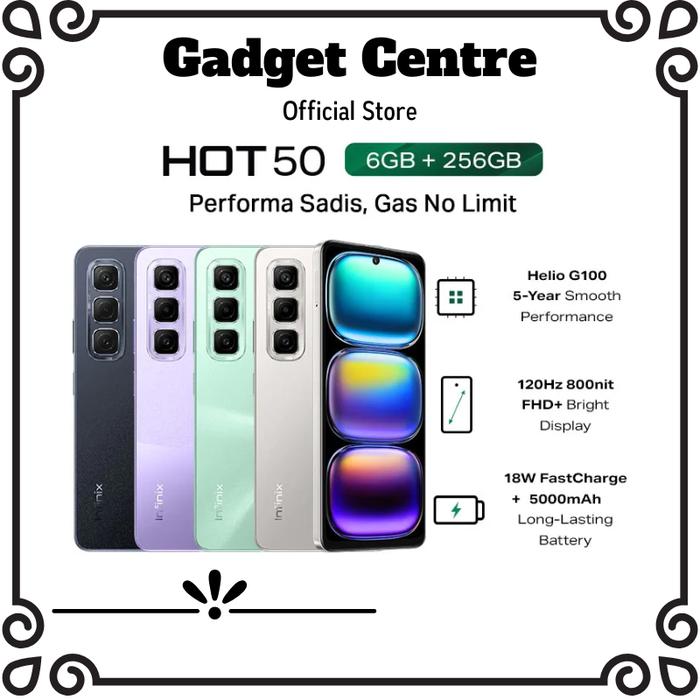 Infinix Hot 50 6/256GB | 8/128GB - NFC - Garansi Resmi - Sleek Black, 8/128GB