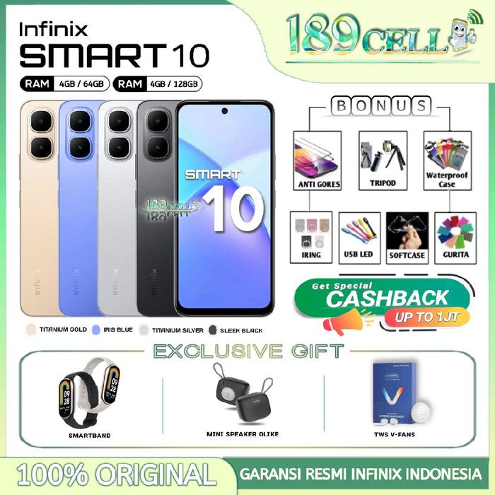 INFINIX SMART 10 [4/64GB] [4/128GB] - Infinix Smart10 [4+4GB Extended RAM] GARANSI RESMI INFINIX - 4/64 - BLACK, BONUS B