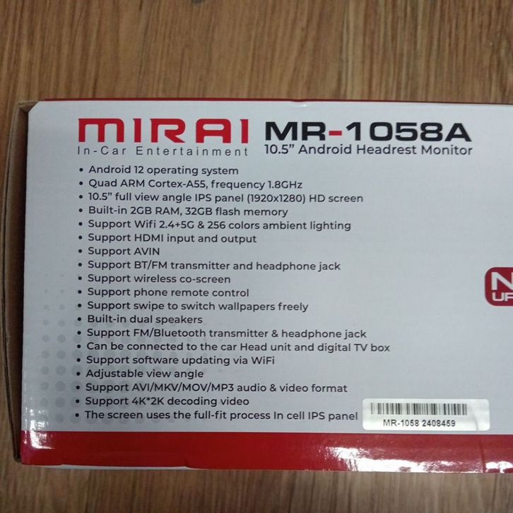 HEADREST CLIP ON MIRAI MR-1058A / HEADREST MONITOR MIRAI MR1058A 2/32GB