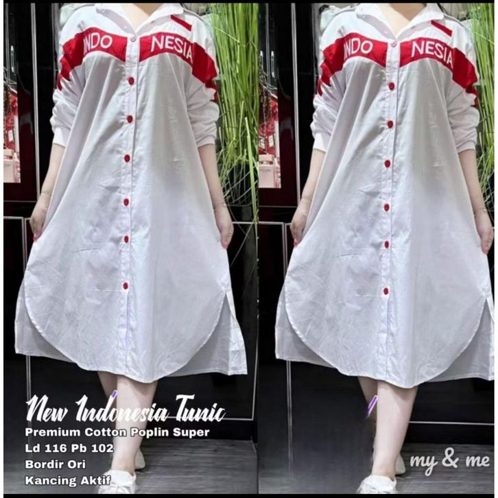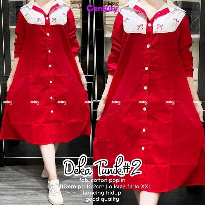 TUNIK MERAH PUTIH WANITA KATUN POPLIN TERBARU PAKAIAN WANITA BAJU ATASAN LENGAN PANJANG KEKINIAN