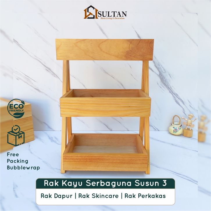 ORIGINAL Rak Kayu Serbaguna Rak Bawang Susun 3 Rak Bumbu Rak Skincare Rak Perkakas Minimalis onehl