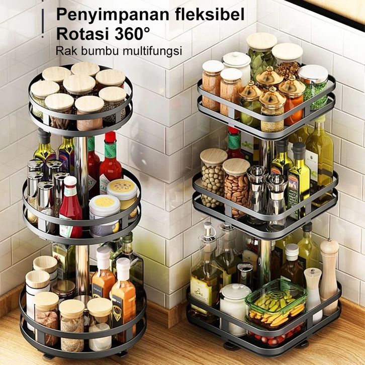 GROSIR Rak Rempah Putar 360 Derajat 1-3 Tingkat Rak Dapur Stainless Steel Multifungsi Rak Penyimpanan Rempah