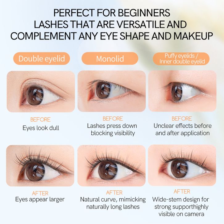 SUN SERI BULU MATA PALSU INDIVIDU YANG DAPAT DIGUNAKAN KEMBALI DENGAN KERITING C PANJANG 9-11MM BULU MATA