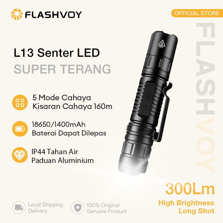 Flashvoy L13 Senter Led Super Terang Anti Air 5 Mode Cahaya Paduan Aluminium Anti Jatuh Senter Swat Police Terbaik Bater
